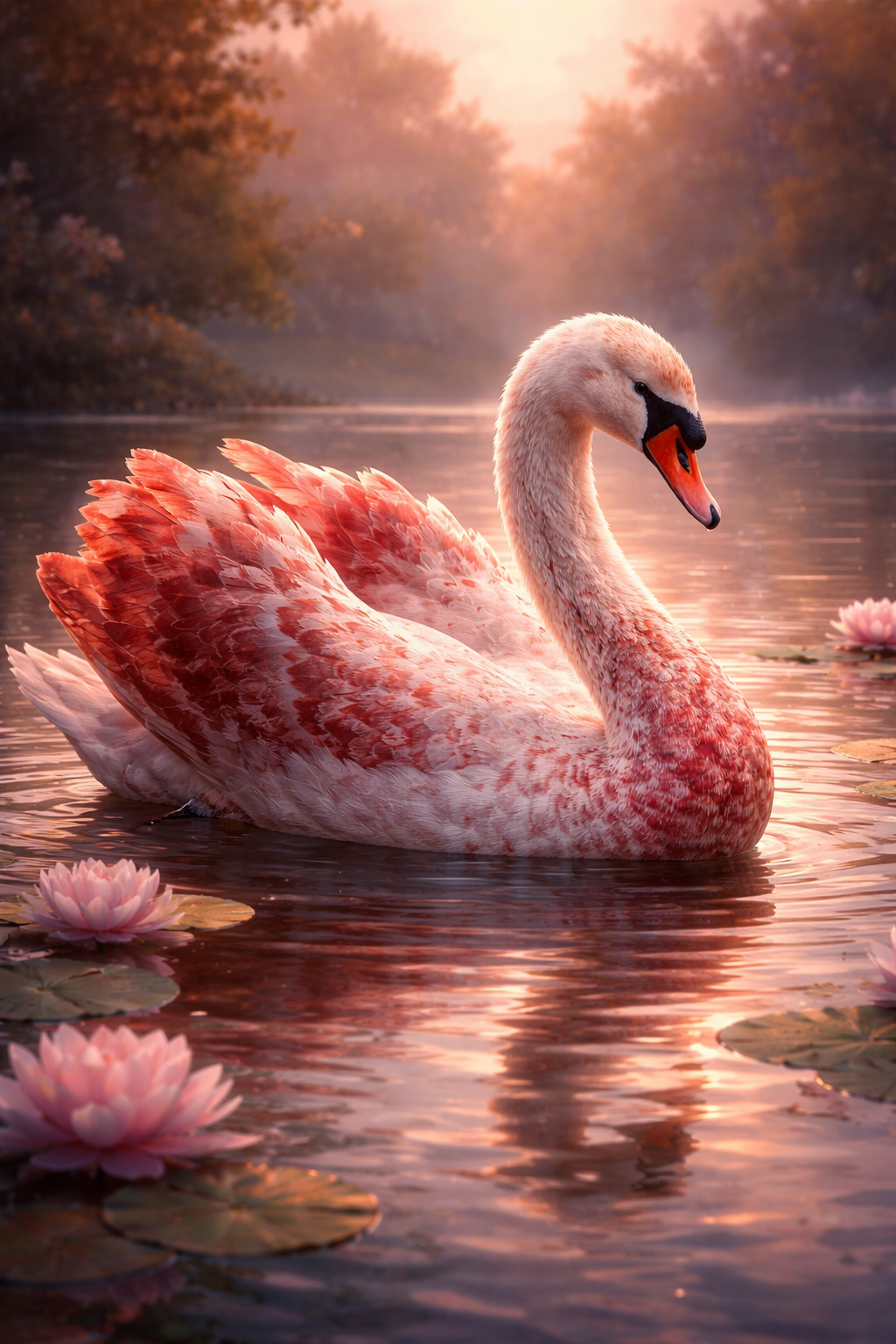 Form the line of the beast Sirela. They are large, Swan-like creatures with white feathers that are speckled with red flecks and are large enough for humanoids to ride on. Their line hides now within the shadows, only remaining within the small pockets nature created that is dedicated to the preservation of their land and orb.